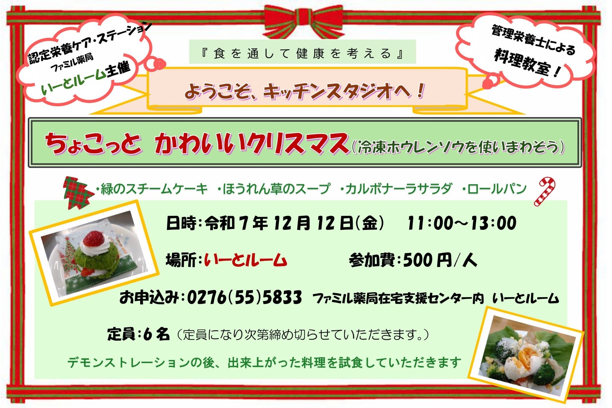 その一つとして令和6年の秋から、いーとルームの管理栄養士による料理教室「キッチンスタジオ」を開催することにいたしました。